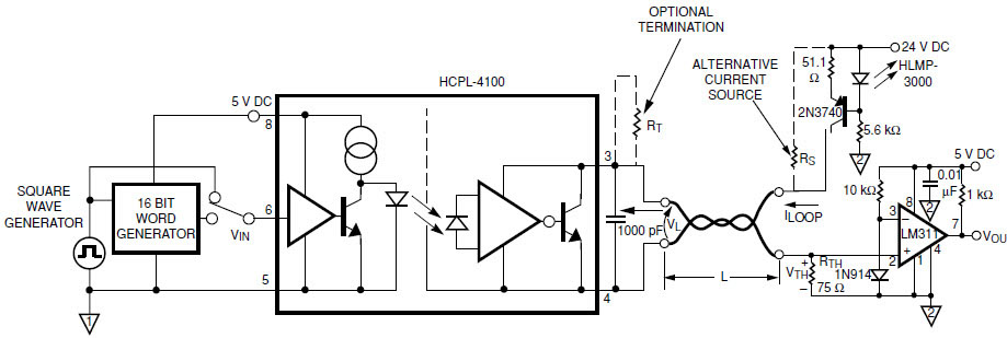 • Data Rate Test Circuit for Isolated HCPL-4100 Transmitter to Non-Isolated Active Receiver