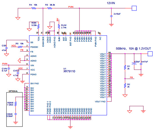 XR79110EVBXR79110EVB, Evaluation Board for XR79110 22V, 10A Synchronous Step Down COT Power Module |