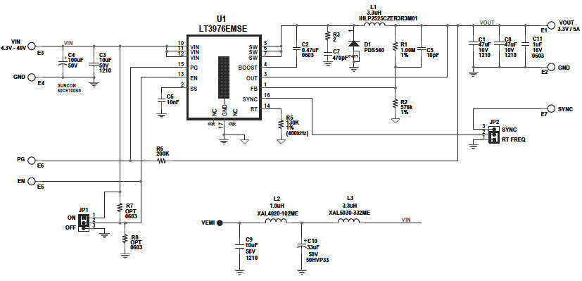 Referenzdesign unter Verwendung des Teils LT3976EMSE von Analog Devices