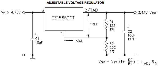 Typical Application for Ez1585D 6.0 Amp Low Dropout Positive Adjustable Voltage Regulator