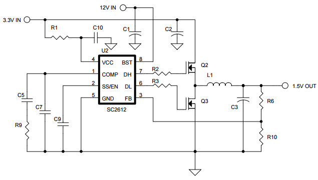 Typical Application for SC2612C 600kHz/200kHz Step-Down DC/DC Converter