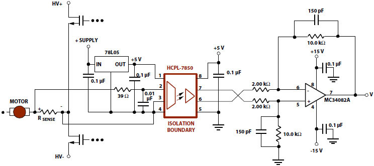 • Typical Current Sensing Application Circuit using the HCPL-7850 Amplifier Using Hermetic Optocouplers in Military and Space Electronics